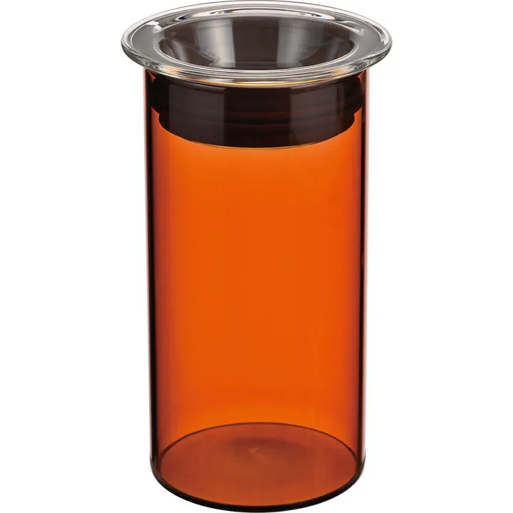 【耐熱ガラス製のカラーガラスシリーズ「HARIO COLORS」のキャニスター アンバー】 ALL耐熱ガラス製のキャニスター。 本体はカラーガラスなので遮光性があり、またフタにはシリコーンパッキンが付いているので、コーヒー豆・粉、茶葉の保存にもおすすめです。 見せる収納にもおすすめです。優しいアンバー色がキッチンを彩ります。