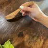 無垢チーク材のバターナイフが入荷しました☆ 安心の天然素材で作られた丈夫な食器になります! チーク材は古来より、高級家具や、ヨットなどの船舶の甲板材などで重宝された、水にも強く、耐久性の高い素材になります。 天然の木材の温かみたっぷりで、使い心地や手触り、使い込んだ手への馴染みも良く、末永くご愛用して頂けます。 ウレタンやラッカー塗装はしておらず、オリーブオイル仕上げになっておりますので、体にも優しく、自然の艶で高級感があります。 量産品とは違う、手にして頂いた時の手触りの違いにご満足いただけると思います! ご家庭のキッチンではもちろん、キャンプやアウトドアにも最適な一品です☆ チーク材の独特な香りがする場合がございますが、洗浄して頂き、自然乾燥していただければ徐々に無くなります。 金物には無い、木目の自然の美しさを実感して頂けるお品です! サイズ:幅2.5cm 長さ15cm 材質:無垢チーク材 最善の注意を払っておりますが、ナチュラル素材でハンドメイドの為、色合い、大きさ等、多少異なる場合がございますが、ご了承くださいませ。