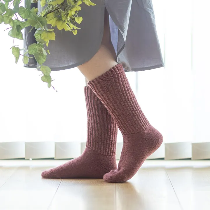 (サンプル)炭糸のあたたかルームソックス|二つ折り|くつした|足底パイル|二重編み|新発売|日本製 アンティークピンク