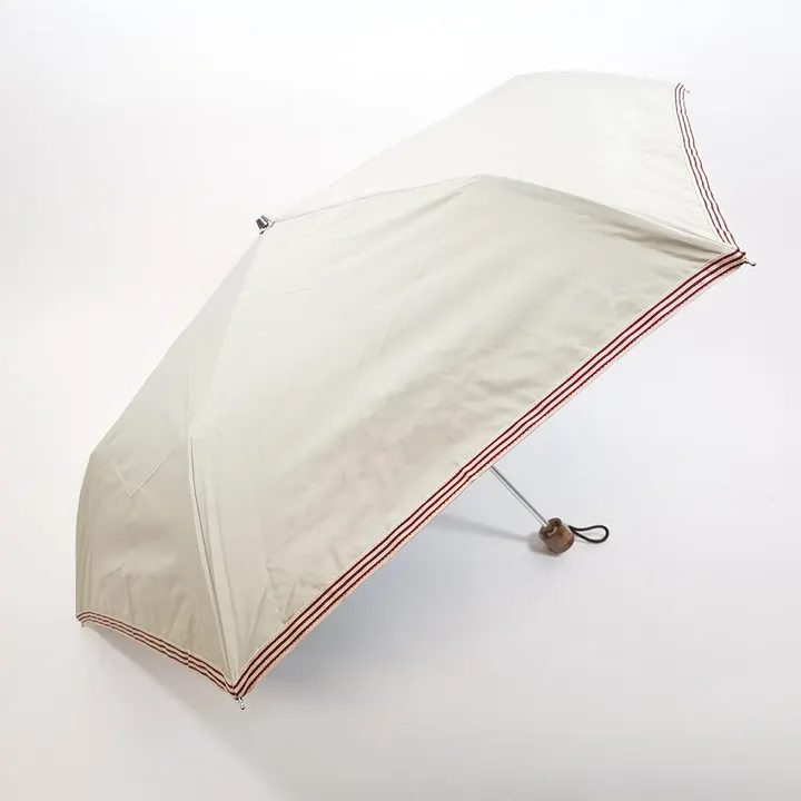 UVカット&完全遮光 遮熱 無地裾レトロマリンボーダー 晴雨兼用3段折りたたみ傘 27562 オフホワイト