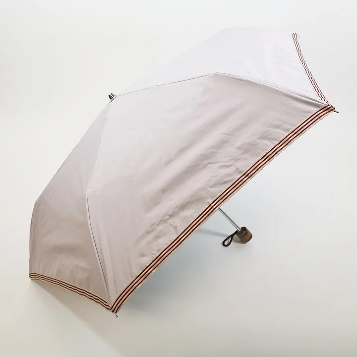 UVカット&完全遮光 遮熱 無地裾レトロマリンボーダー 晴雨兼用3段折りたたみ傘 27562 ピンク