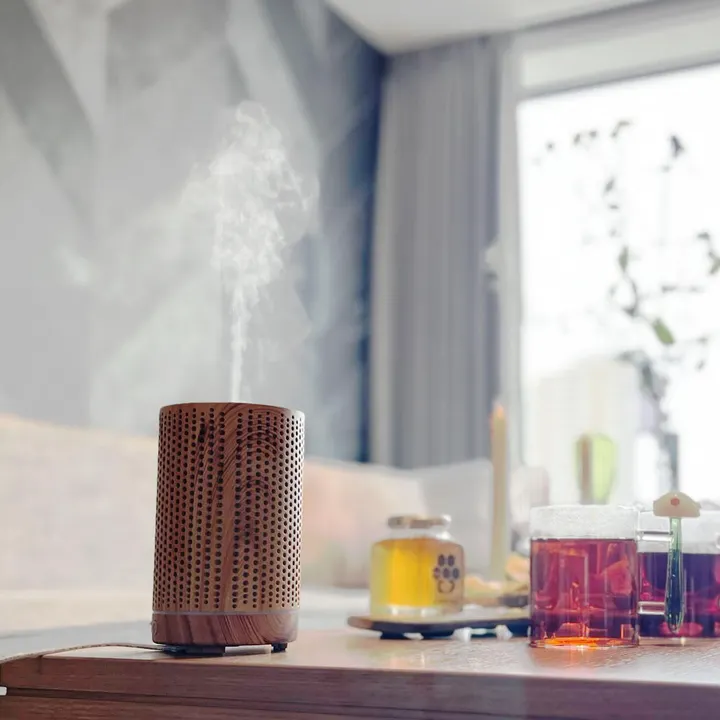 落ち着いたインテリアにマッチするシンプルデザインのアロマディフューザー。AC電源タイプ。