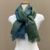 手織りベビーアルパカの大判ショール バイカラー フォレストグリーン×ブルー