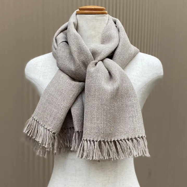 ”静岡の実店舗で10年販売しているアルパカ製品です。飽きがこず、末永くご愛用いただけるような上質でベーシックなアルパカのショール。ご自分用にお求めくださったお客様が気に入って、ご家族など大切な方へのプレゼントなどにも選んでくださっています。自信を持っておススメするお品です!” 2色遣いなので、巻き方次第で見え方色々、お楽しみ頂けます。 100%ベビーアルパカを使用した手織りのショールです。「ベビーアルパカ」はアルパカ遷移のグレードのことで、決してアルパカの赤ちゃんの毛ではありません。アルパカよりも細くやわらかな線維です。そのため、アルパカよりも更にしっとりしてほとんどチクチクしません。そして軽く、断熱効果はアルパカよりも高いです。 そんな最上級のベビーアルパカ100%で手織りしたショールは、軽く、温かく、しっとりとしていてとても上質です。 幅60センチ、長さ180センチと大判なので、巻いても、羽織っても、ひざ掛けにしても・・・使い勝手のいいサイズです。重さはなんと約155~165グラムです。とても軽く、畳んでバッグの中に入れても邪魔にならない大きさです。(収納用のオーガニックコットンの袋をお付けします) 手織りならではの、柔らかいしっとりとした仕上がりです。もちろん男女問わずお使いいただけます。 その1:アルパカの毛はストロー状になっている! 寒いときはストローの中に暖かい空気をため込んでくれます。そして暖かくなってくると空気を放出してクールダウン!さらに、蒸れにくいです。その結果、『秋口から春先まで長くお使いいただけます。夏場はエアコン対策でお使いいただくことも!』 その2:アルパカの毛は細く、長く、そして強い! とにかく軽いです。細いのに強いので摩擦にも強く、毛玉ができにくいです。『このグレンチェックマフラーは176センチ×30センチの大きさですが、重さは110g前後。たたむとバッグの中にすっぽり収まって、邪魔になりません。日中暖かくても、帰りが遅くなる時などは、バッグに入れておくと安心ですね』 その3:手織り・手編み用の糸を使用しています。 Autenticoのアルパカ製品はすべて手作業で作られています。そのため、使用するアルパカの糸は油分を残して加工してある手織り・手編み用です。『表面が非常になめらか、スムースです。チクチクしにくいのでウールのセーターが苦手と言う方でもお使いいただいています。また、汚れが付きにくいのも、ありがたいです』 フェアトレード商品です。ペルー高地に暮らす先住民たちの仕事作りに貢献しています。