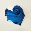 手織りベビーアルパカの大判ショール バイカラー スカイブルー×ダークブルー
