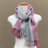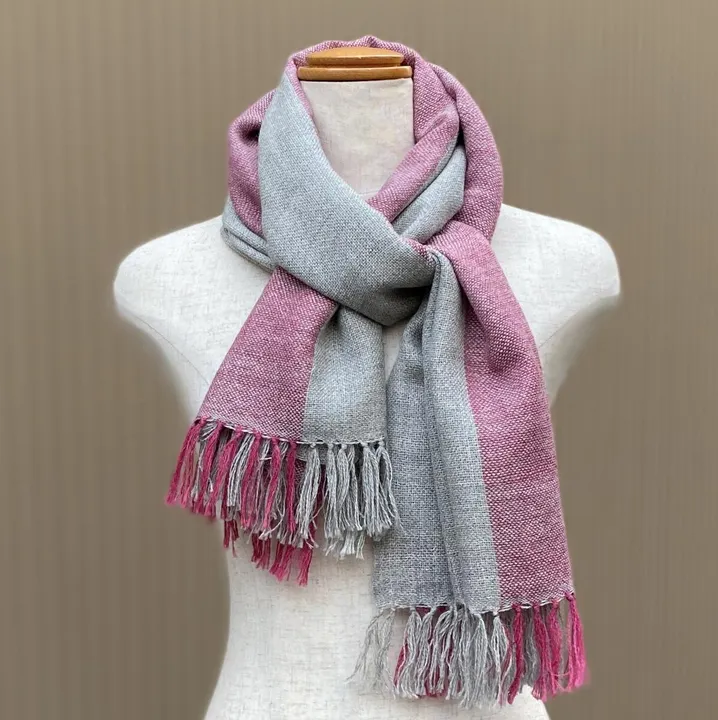 手織りベビーアルパカの大判ショール バイカラー マジェンタ×ライトグレー