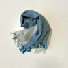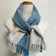 手織りベビーアルパカの大判ショール バイカラー ターコイズブルー×ライトグレー