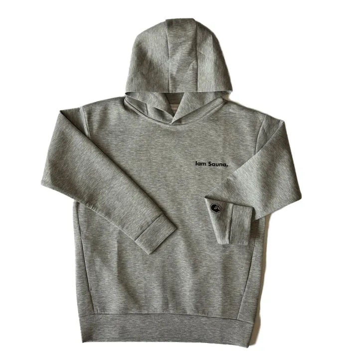 「Iam Sauna」 プルオーバー パーカー Iam Saunaロゴ刺繍と、袖口にsaunaMANワッペンを施したオリジナルデザイン。 多重構造の機能素材を生地を採用。 軽量ながら保温性、通気性抜群。 立ち上がりの存在感のあるフードが魅力のパーカー 両サイドポケット付 軽く肉厚な機能素材。テック系でマルチに活躍 軽いテック系ダンボールニット生地でシワになりづらく、 軽やかな肌触り、速乾性も兼ね備え、サウナ前後に最適。 【POINT 01】<多重構造により実現した多機能性> スポーツミックスアイテムに多く取り入れられ、注目を集めているダンボールニット生地。 2枚の生地を中糸でダンボール状に繋ぎ合わせています。 気質空間のある構造により空気の層ができるため、保温性・通気性が高いのが特徴。 軽くてシワになりにくいほか、ストレッチ性も兼ね備えています。 さらに取り扱いが容易でガシガシ洗濯しても縮みにくいのが◎。 【POINT 02】<街着にも使える質感と選べるシルエット> 表糸にレーヨンを混ぜ込む工夫を施すことで、ほどよいやわらかさと光沢感、きれいな生地目を実現。 チープな見た目にならないよう、生地そのものの質感に徹底的にこだわり抜きました。 カジュアルなタウンユースからスポーツシーンまで、あらゆるコーデを後押しします。 <SPEC> COL:グレー(ヘザーグレー) SIZ:ユニセックス M /L /XL MATERIAL:ポリエステル 77% / レーヨン 17% / ダンボールニットポリウレタン 6% 9.4オンス T/R SIZE M L XL 身丈 70 73 76 身幅 55 58 63 肩幅 50 54 57 袖丈 56 57 58 ※モニタやPC環境等により実物と多少色合いが異なって見える場合もございます。 ※ 生地の特性上、長期間の梱包・保管におけるたたみ跡が残存することがありますが、洗濯またはスチームアイロンで除去できます。