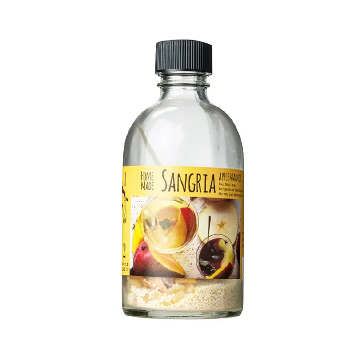 瓶にドライフルーツや:甜菜糖、シナモンなどが入っています。市販のワインを注いで数時間冷蔵庫で冷やします。炭酸水やソーダ、オレンジジュースなどで割れば、冷たくフルーティーなサングリアの出来上がりです。。1.ワインを270ml注ぎます。2.冷蔵庫で4時間冷やします。3.炭酸水で割れば美味しいサングリアの出来上がり! ワインを注ぎ入れ数時間置くとリンゴとマンゴーのフルーティーなサングリアが出来上がります。冷やして炭酸水やオレンジジュースで割って飲むのがおすすめです。ワインは赤でも白でもどちらでもお好みでお楽しみください