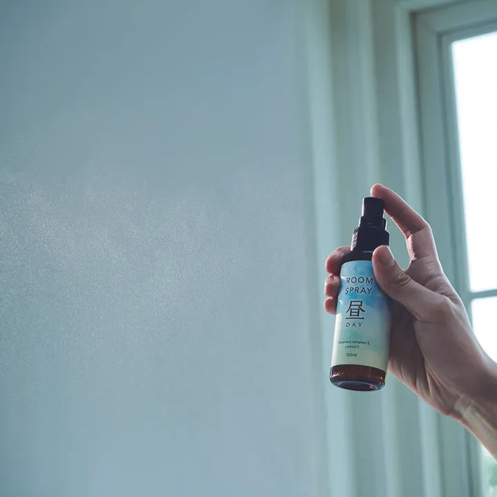 ローズマリーのすがすがしい香りと、レモンのフレッシュで酸味を感じるさわやかな香りをブレンドしたルームスプレー。 昼間の気分のリフレッシュに手軽にスプレーできます。 あまり広範囲に拡げたくないときは、ティッシュにしゅっとふきつけて香るのもおすすめです。