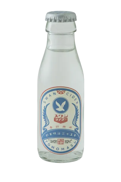「スワンサイダー(復刻版)」のミニボトルタイプです。 従来ボトル同様原料には上質のグラニュー糖を使用し、炭酸を強く含んでいますので、 昭和のサイダー全盛期の味をお楽しみいただけます。 従来ボトルと並んで陳列することで、より一層商品の魅力である“可愛らしさ”を提案することができます。 従来サイズの「スワンサイダー(復刻版)」でも、佐賀の地サイダーとして、贈り物やお土産としての要望が多くありましたが、 今回のミニボトルでの製品化でより気軽に重量を気にせずご購入していただくことが可能となりました。 あっ!と驚く小さな小瓶に炭酸飲料を入れることで、清涼飲料という枠に囚われない販売展開も可能となります。 雑貨や小物的な要素が強い商品ですので、雑貨店やお土産品店、ノベルティ商品としてのお取り扱いもぜひご検討ください。