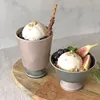 脚のある形状に、スモーキーな色合いと表面の艶がデザートを引き立てる器です。ゴブレットは飲み物はもちろんフロートアイスとしても楽しめます。ラップがピッタリと付くので、冷蔵庫での保存するのも便利なカップです。