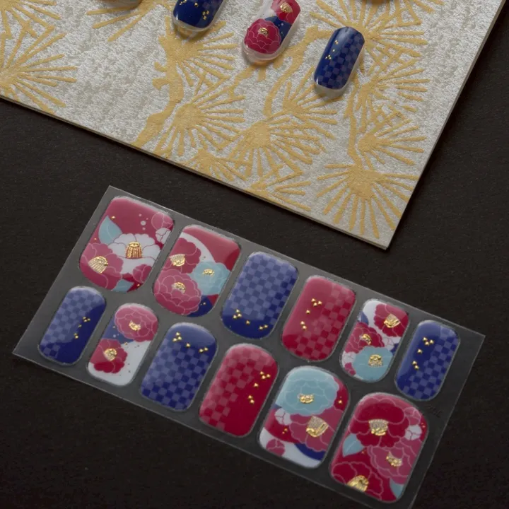 着物の格子柄は、永遠、発展、繁栄といった意味を持ちます。 椿の花には、高貴、神聖といった意味を持ちます。冬でも葉を落とさない椿は古くから魔除けの力を持つ神聖な木と伝えられてきました。 美しさに秘められた願いを指先に。 爪にやさしい素材で、ダメージを気にせず楽しめる。 日常を少し特別な一日にしてくれます。 今日1日を特別な気分で過ごして下さい。 自宅で手軽にサロン級の仕上がりを実現でき、簡単に貼り付けられるため、忙しい方にも最適です。 【使用方法】 ①1セットにパーツ12枚入りです。シールをドライヤーなどで温めると密着しやすくなります。、爪の油分を拭き取ってから、ご自分の爪よりひと回り小さいサイズのシールを選びます。 ②フィルムをそらし、なるべくピンセットなどを使用しシールを触らないように、シールをゆっくり丁寧に剥がします。 ③空気が入らないように、シールを爪に密着させます。 ④余分な部分を切り離します。爪よりシールが長くならないように斜め45度の角度で整えると自然に仕上がります。 ⑤本商品は長期間のご使用を想定しておりません。 仕上げにトップジェルを爪先のエッジとシールよりひと回り大きく塗って固めると仕上がりが良くなります。 【使用後】 剥がす時は爪表面に傷がつかないようにお湯につけてゆっくり剥がしてください。