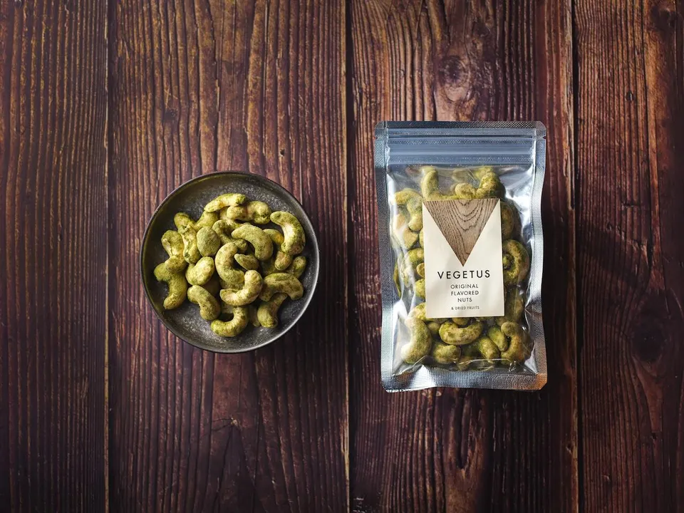 インドのゴア産のオーガニックジャンボカシューを使用。 ナッツには等級があり、粒の大きいものは非常に等級が高く 味わいも濃くおいしいです。 八幡平バジルカシューに使うカシューナッツは、一般的なカシューナッツよりもかなり大きく カシューナッツならではの優しい甘味と香りがあり、そのまま食べてもとてもおいしいものを使用しています。 その選び抜いたカシューナッツに 八幡平の地熱で栽培されたバジルと、イタリア産パルミジャーノレッジャーノをたっぷり使用して味付けをしました。 地熱栽培されているバジルは、一年を通して安定して栽培され 摘みたてのバジルを買付したのち 店主が一つ一つ枝から葉を離し、柔らかい葉を選定し 丁寧に加工しています。 そこにイタリア産のパルミジャーノレッジャーノを惜しみなく合わせて まるで一皿の料理のような味わいのフレーバーに仕上げました。 店舗でもリピートの非常に多い人気商品で 自信を持ってお薦めるす一品です。 他にはない味わいの高級感あるおつまみナッツですので 自分自身へのご褒美としてのほか そのままプチギフトや手土産、 お気にりのほかのフレーバーと組み合わせた贈り物、ギフトとしておすすめです。 常温で小分けパックでのお届けなので 手軽に贈れるおつまみとして人気です。