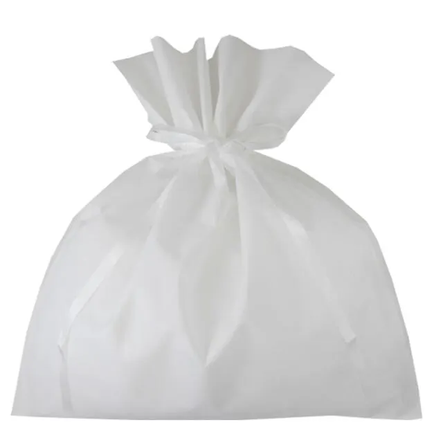不織布ギフトバッグLLサイズ 不織布ポーチサテンリボン付き マチ無し 100枚入り LC963 ホワイト