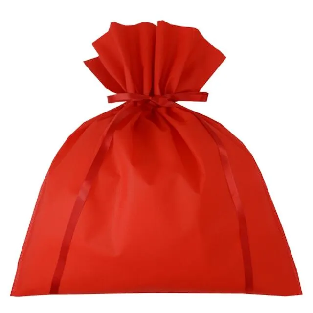 不織布ギフトバッグLLサイズ 不織布ポーチサテンリボン付き マチ無し 100枚入り LC963 レッド