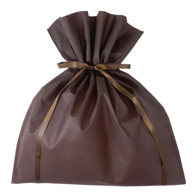 不織布ギフトバッグLLサイズ 不織布ポーチサテンリボン付き マチ無し 100枚入り LC963 ブラウン