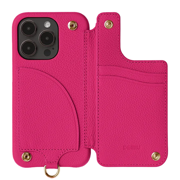 2023年9月より弊ブランドはDemiurvo(デミウルーボ)改めDEMIU(デミュウ)に改名いたします。 それに伴い、DEMIUの名を配したブランドネーム・ロゴが採用されます。 一部商品に関しては、Demiurvoとして引き続き販売いたしますが順次モデルチェンジ予定です。 何卒、ご理解のほど宜しくお願い致します。 フランス語で「風船」を意味するBALLON(バロン)。 風船のようなモコモコしたテクスチャーをデザインしたお財布機能つきiPhoneケース。 上質なレザーの質感と指にフィットする感覚が心地よいモデルです。 思わず目を惹かれるデザインと質感で存在感抜群のアイテムです。右扉の内側に2段のカードスリットと隠しポケット、左側に収納ポケットを備えた便利なアイテム。 蓋をスタンドにして横置きできるのでYouTubeやテレビ会議にも便利。 ショルダーなどを付けられるD型リングが付いているので、別売りのストラップとのセットや色違いでコーディネイトするのもおすすめです。 ※iPhone12 miniおよび13miniの背面のカード入れに関してですが左側(ケース装着側)の仕切り部分と、右側の裏ポケットにはカードはお入れいただけません。右側のカード入れにはカード段が1つの仕様となります。ご注意ください。 ※ストラップは別売りです。 ー仕様ー ・素材 本体:フランス産牛革 ケース部分:ポリカーボネート ・重量 約62g