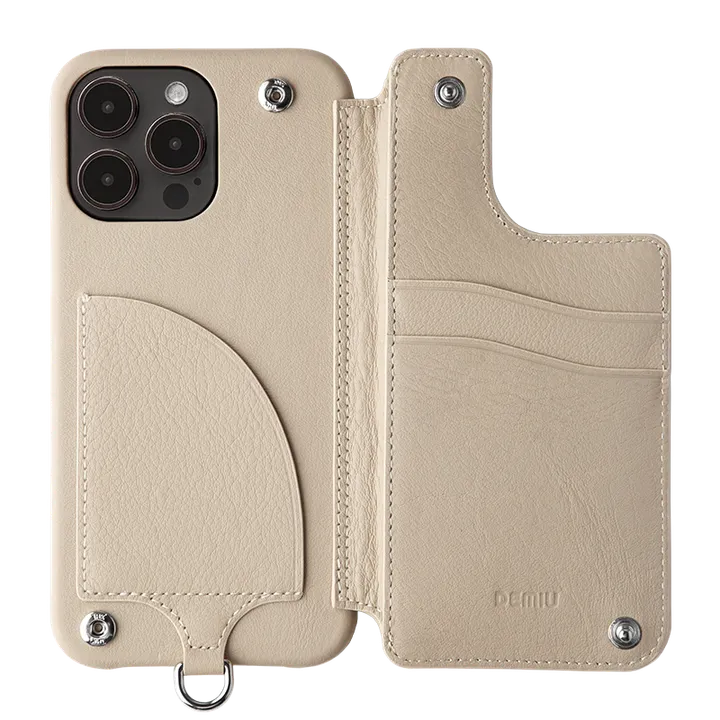 2023年9月より弊ブランドはDemiurvo(デミウルーボ)改めDEMIU(デミュウ)に改名いたします。 それに伴い、DEMIUの名を配したブランドネーム・ロゴが採用されます。 一部商品に関しては、Demiurvoとして引き続き販売いたしますが順次モデルチェンジ予定です。 何卒、ご理解のほど宜しくお願い致します。 フランス語で「風船」を意味するBALLON(バロン)。 風船のようなモコモコしたテクスチャーをデザインしたお財布機能つきiPhoneケース。 上質なレザーの質感と指にフィットする感覚が心地よいモデルです。 思わず目を惹かれるデザインと質感で存在感抜群のアイテムです。右扉の内側に2段のカードスリットと隠しポケット、左側に収納ポケットを備えた便利なアイテム。 蓋をスタンドにして横置きできるのでYouTubeやテレビ会議にも便利。 ショルダーなどを付けられるD型リングが付いているので、別売りのストラップとのセットや色違いでコーディネイトするのもおすすめです。 ※iPhone12 miniおよび13miniの背面のカード入れに関してですが左側(ケース装着側)の仕切り部分と、右側の裏ポケットにはカードはお入れいただけません。右側のカード入れにはカード段が1つの仕様となります。ご注意ください。 ※ストラップは別売りです。 ー仕様ー ・素材 本体:フランス産牛革 ケース部分:ポリカーボネート ・重量 約62g