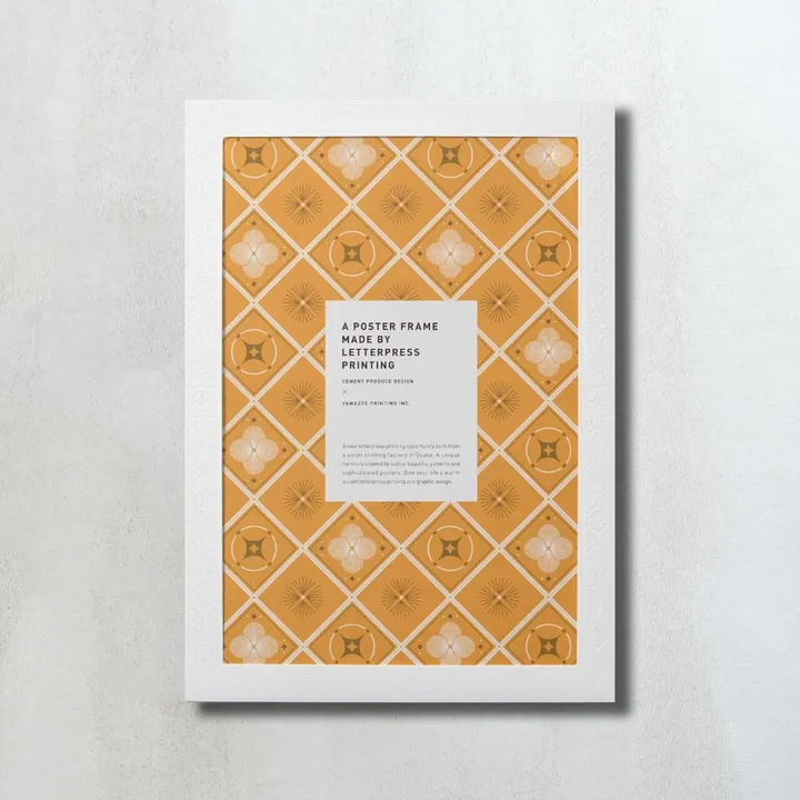 A4サイズ【molding】の商品ページです。 ~Relieful~ 昔ながらの活版印刷を現代風にアレンジした紙の額縁です。 活版印刷特有の「印圧による紙の凹凸が感じられる質感」を生かして、レリーフ(浮き彫り)加工を表現しました。 柄ごとに使用する紙の種類を変えることで、紙と活版が織りなす、繊細ながらも、どこか温かみのあるデザインの違いを楽しむことが出来ます。 部屋の壁面を飾るアートフレーム、写真やちょっとした贈り物をいれる封筒など、インテリアだけでなくギフトとしてもお使いいただけます。 【バリエーション】 A:水彩タッチで繊細な雰囲気の花柄です。 B:オレンジがベースの北欧インテリア風の絵柄です。 C:幾何学模様のようなモールディング風の絵柄です。 【SIZE】H220×W307mm 【PRINT】活版印刷1色(しろ) 【PAPER】スノーブルFS 273k 【OTHER】グラフィック(1枚)、紙スタンド、取扱説明書 【CREDIT】有限会社 セメントプロデュースデザイン ※写真はイメージとなります。
