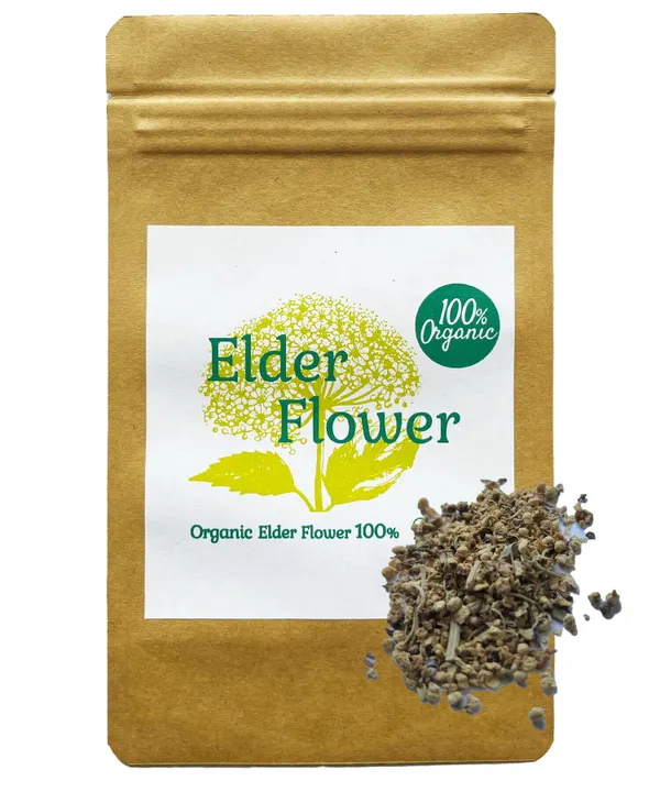 【新商品レビューキャンペーン対象】100%オーガニック ドライ エルダーフラワー / Elder Flower 50g セイヨウニワトコ ケルセチン フラボノイド クロロゲン酸 リラックス ハーブ ティー 風邪 花粉症 発熱 インフルエンザ アーユルヴェーダ