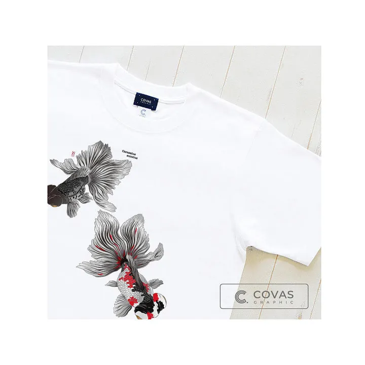 ユニセックス・半袖プリントTシャツ "和金魚" ホワイト デザインTシャツ 325239-10 size: XS