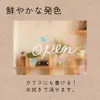 ブラックボード、ホワイトボード、ガラスなどに筆記可能なボードマーカーです。 あざやかな発色で退色しにくい顔料インクを使用しており、長時間の展示でも色をキレイに保ちます。 柔らかい布やティッシュにみずを含ませ、水拭きするだけで簡単に消字可能です。 乾くと乾拭きでは落ちなくなるため、書いたものがこすれずキレイな状態で掲示できます。 完全に乾いた状態であれば少しの雨でもインクが流れ落ちることはありません。
