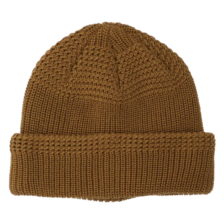 ドライな風合いのポリエステル糸を使用。編み柄をさりげなく切り替えたワッチ。程よい締め付けのダブル編み地。