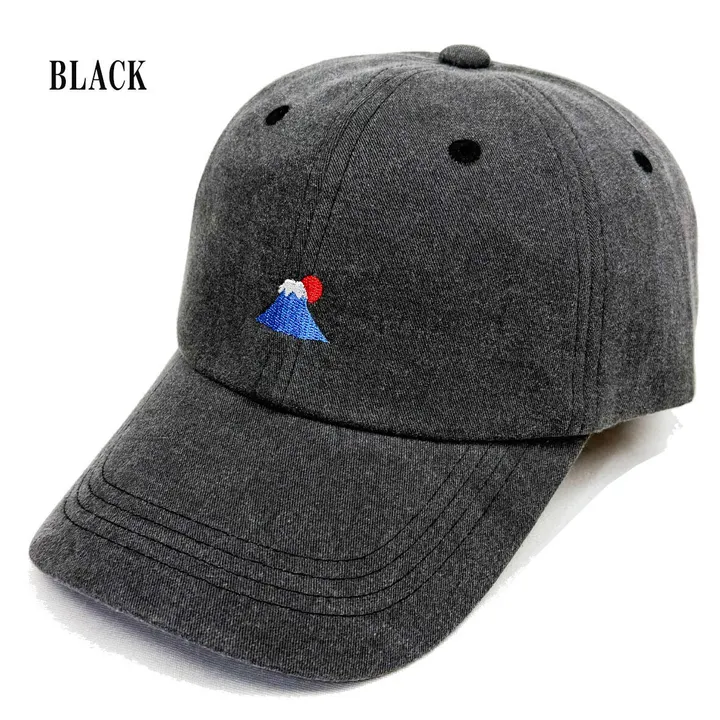 【オリジナル刺繍】富士山 ウォッシュ加工 キャップ 観光地 インバウンド コットン 日本 土産 帽子 BLACK