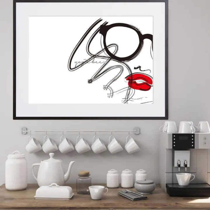 【現代アートポスター】サングラス モノトーン 唇 おしゃれな女性イラスト A3(M) フレームセット:黒 40.0×51.5cm
