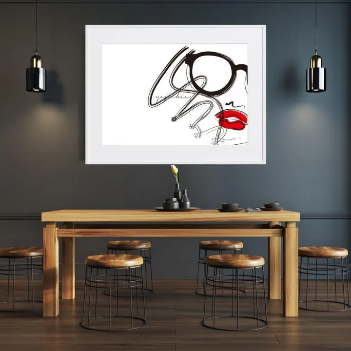 【現代アートポスター】サングラス モノトーン 唇 おしゃれな女性イラスト A2(L) フレームセット:白 55.1×73.3cm