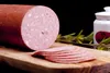 ガーリックの効いたソフトサラミ。「コッホ=加熱した」サラミです。スライスで。 名称 ソーセージ(加熱後包装製品) 原材料名 国産豚肉、牛肉、食塩、糖類(砂糖、水あめ、ブドウ糖)、香辛料、リン酸塩(Na)、酸化防止剤(V.C)、調味料(アミノ酸)、酸味料、香料、発色剤(亜硝酸Na) 内容量 97g 賞味期限 別途商品ラベルに記載 アレルゲン 豚、牛