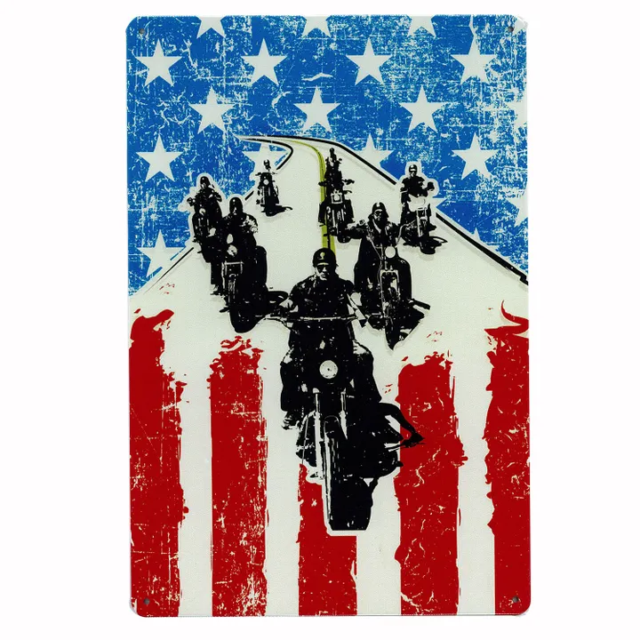 人気のアメリカンデザインのビンテージ風サインボードです。こちらはA4サイズに近いサイズです。 お部屋・ガレージ・お店・カフェ・店舗のイメージ作りやイメージアップ、ディスプレイ、お部屋のインテリア、壁飾り、催し物、など幅広く活躍します!また掛けやすいように穴が開いているので取り付けも簡単です。  スチールの看板はアメリカ各地で街頭広告、店内用看板として商用看板として用いられています。 アメリカンスタイルのデザインなのでお部屋やガレージをアメリカスタイルに装飾可能です。 DIY、エイジング塗装、アンティーク塗装、男前系 などのリメイク家具やリメイク雑貨とも相性抜群です。 錆びているように見えますが実際には錆びておりませんのでお部屋を汚すことなく飾っていただけます。
