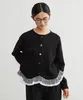 KNG640・チェック柄フリル裾ショート丈カーディガンダンボール素材 BLACK/FREE