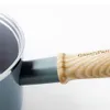 メイフラワーシリーズのソースパンです。セラミックコーティングの効果で、熱が素早く、均一に伝わり、お料理をおいしく仕上げます。また、優れたノンスティック効果で、こびりつきにくく、お手入れも簡単です。メイフラワーシリーズは、落ち着いた色味の本体と、天然木のハンドルを採用しており、ナチュラルなデザインです。使うほど味わい深くなる、ヴィンテージ調のデザインが魅力です。