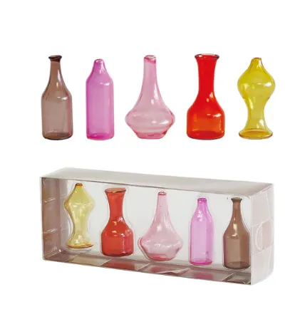 小さな、小さな5個セットのフラワーベース。 暖色、寒色、クリアと、好みに合わせてコレクションしたくなる可愛さ。 ミニサイズなので、場所を選ばずにどこにでも飾ることができます。 カラフルなのでまとめて飾るのはもちろん、1個ずつ様々な場所に飾る事でも楽しみが広がります。