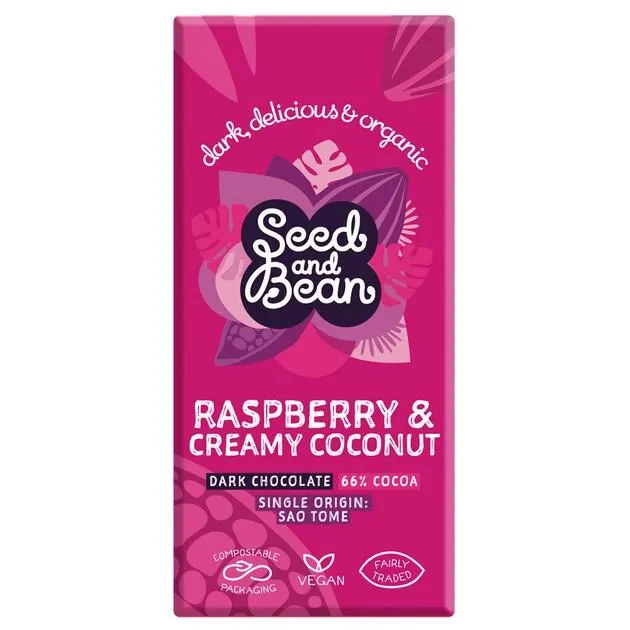 【賞味期限:2026.1.31】Seed and Bean オーガニック チョコレート(ラズベリー&ココナッツ)66% 75g 1セット(10点)