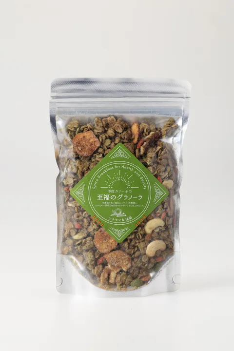 ★ご購入後、リーフレット希望枚数をメッセージで送付ください(1枚〜商品購入数)。ご希望がない場合、商品種類数のみの同梱となります。 京都産宇治抹茶のコクのある味わいに、優しい甘い香りのシナモンを合わせました。 * スパイスの力を毎日取り入れていただきたい。 そう考えてたどり着いたのが「至福のグラノーラ」。 からだに必要な栄養が詰まった食材やスパイスを厳選しました。 食物繊維や、鉄分、亜鉛、ビタミンC、オメガ3脂肪酸、ポリフェノール・・・ 日々の健康と美をサポートできるように、美味しさと栄養を両立できる食品をひとつ一つ選び、すべて手作りで丁寧に焼き上げています。 忙しい日でも、豊かに香るスパイスで心を満たし、手軽に身体に優しい素材で元気に1日をスタートしていただけたら幸いです。 【美味しい食べ方】 ① 牛乳、ヨーグルトをかけたり、混ぜ合わせたり。寒い時期はホットミルクがオススメです。 ②おすすめスパイスのちょい足しで気分を変えたり ①+カルダモンパウダー :爽やかな優雅な香りに包まれたい朝に +ナツメグ ;ちょっとリッチなコク深い香りに ③ゴールデンミルクでホットグラノーラに ★ゴールデンミルク:牛乳100ml+はちみつ小1/2+ターメリック少々 を600Wで1分ほど加熱して作れます。 ④ココアでもっとカカオまみれに あったかいココア、冷たいココアに添えて食べれば、チョコ好きにはたまらない至福の時間に。 ⑤おやつの時間に バニラアイスにトッピングすればシナモングラノーラアイスに。 ★至福のグラノーラは、全て宮城の社会福祉法人「はらから福祉会」でひとつひとつ丁寧に手作りされ、発送されています。 売上が障害を持つ方の月額賃金と自立支援に繋がっております。厚く御礼申し上げます。