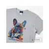ユニセックス・半袖プリントTシャツ "カラフルFブルドッグ" 杢グレー デザインTシャツ 363602-14 size: M