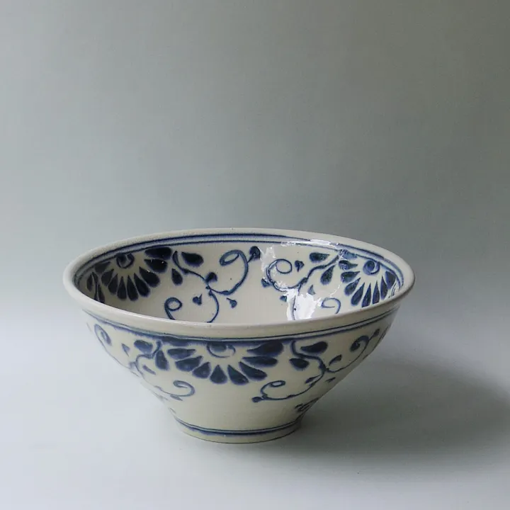 【手描きの染付】 宗山窯 凛麺丼 大 花安南