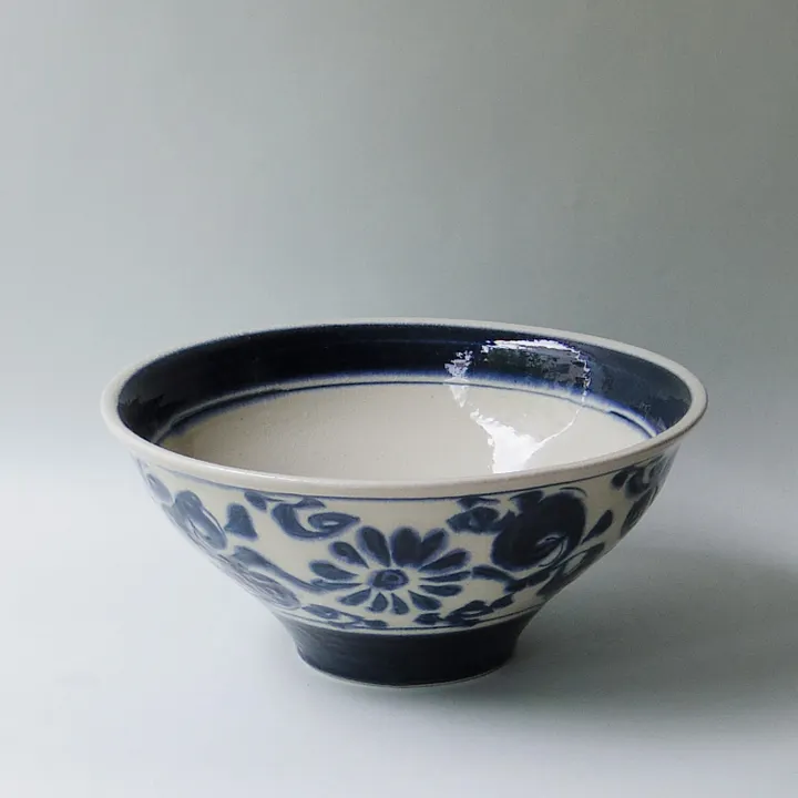 【手描きの染付】 宗山窯 凛麺丼 大 染唐草