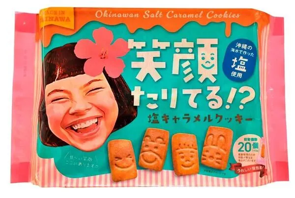 笑顔たりてる!? 沖縄の海の恵みが詰まった海水塩をほんのり効かせたやさしい甘さのキャラメル味。 どこか懐かしい味わいとサクッとした軽やかな食感がクセになる。 一口食べれば思わず笑みがあふれます! その日出会える笑顔は、開けてからのお楽しみ!※全10種類をランダムに入れています。
