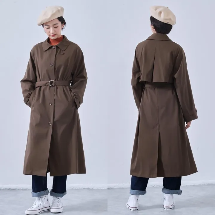 KNNJ360-コットンライク・トレンチコート・裏地・ベルト付き・ロングコート・秋冬アウター BROWN/FREE