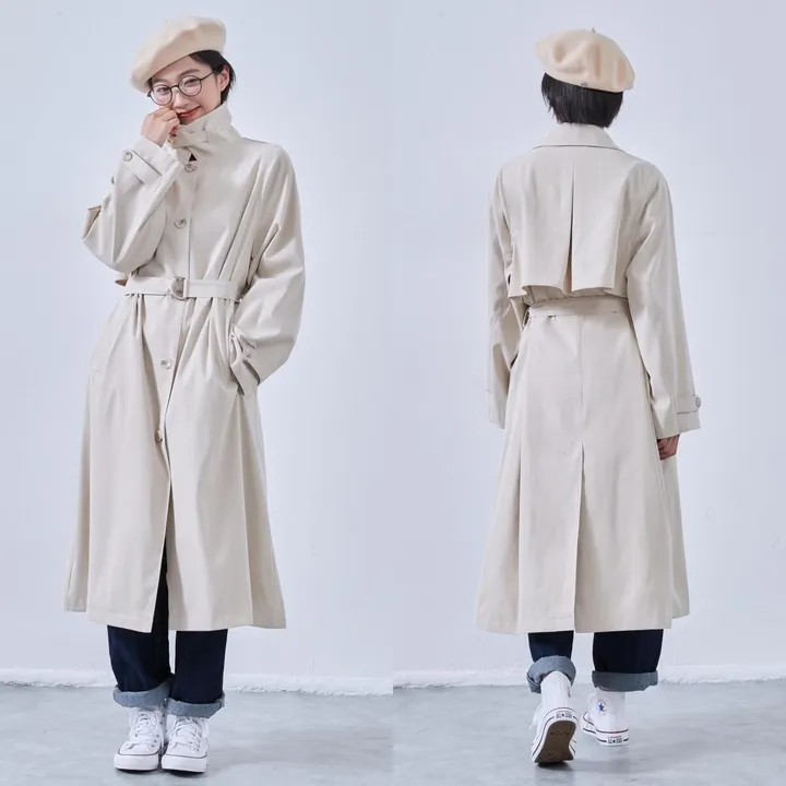 KNNJ360-コットンライク・トレンチコート・裏地・ベルト付き・ロングコート・秋冬アウター IVORY/FREE