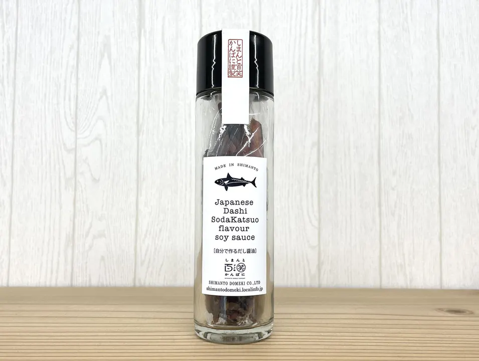 じぶんでつくる「だし醤油」土佐清水は宗田節の生産量が日本一。1月から3月に獲れる「寒めじか」と呼ばれる節の中では最高級とされる時期の原料のみ使用しているので、上品な香りでコクと旨味のあるよいだしがでます。いつも使っている醤油を入れ4~5時間すると宗田節の香り醤油ができあがります。卵かけご飯、冷奴、うどんやそばのだしに、おひたし、茶わん蒸し、炒飯、野菜炒めなどアイデア次第でいろいろご利用頂けます。 だし醤油にお湯を注いで簡単スープとしても・・・少し贅沢な気分にしてくれる。蓋を開けて醤油を注ぐ。たったこれだけで、まろやかなだし醤油に生まれ変わります。醤油の好みは、生まれ育った地域などで、人それぞれ。自分で作る出汁醤油 宗田鰹(厚削り)なら、お好みのお醤油で、お好みのだし醤油が作れます。じっくりと旨味が出る。だしの素からは、じっくり時間をかけて旨味が出ます。一度で出尽くしてしまうものではありませんので、醤油が半分程に減ってきたら継ぎ足して10回ほど使えます。グルメな方にオススメの醤油の素。刺身・炒飯・煮物などお料理に。また、卵かけご飯などに。かけ醤油・つけ醤油・調味料として、いろいろお使いいただけます。 多様な使い方 だし醤油: お好みの醤油を注ぐだけで、簡単に本格だし醤油が完成します。 だし酢: お酢を注ぐと、だし酢としてもお使いいただけます。 万能ポン酢: 醤油、お酢、柚子果汁を2:1:1の割合で混ぜれば、手軽にポン酢も作れます。 ぜひこの機会に、ご家庭で手軽に本格的な味わいを体験し、料理の幅を広げてみませんか?
