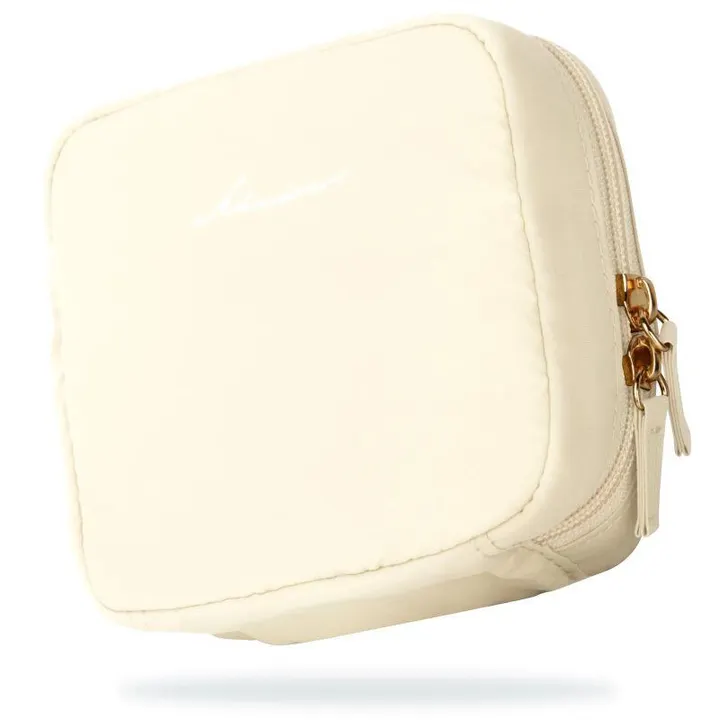 ユーザー様からのお声、「ペンシルを入れたいのに高さが足りない・・」 「コンパクトを入れると底がボコボコする」などの 少しもどかしく感じたサイズ感を見直し、 メイクアイテムがすっきり収まるよう改良。 また、内ポケット片側は4つのギャザーポケットへ。 上部のデッドスペースを有効活用できるように◎ 旅行のパッキングに更に便利になったLサイズは 中央に仕切りファスナーポケットを追加。 スキンケアアイテムからメイクアイテムまで 立てたまま収納しやすくなりました。 たくさんの仕切りやポケット、 洗濯機で丸洗い可能な点など 従来のいいところはもちろんそのまま。