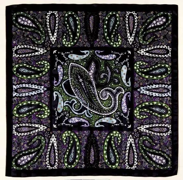 シルク綿スカーフ 更紗紋様 ペイズリー クロ