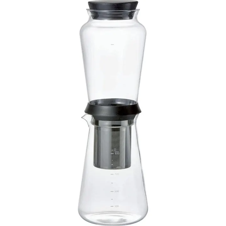 上ボールに水を入れると、点滴パーツの2つのスリットから水が流れて滴下します。スピード調整なしで約1時間前後で落ちきるため、手軽に本格水出しコーヒーをお愉しみいただけます。また、コーヒー以外に水出しのお茶用としてもお使いいただけます。