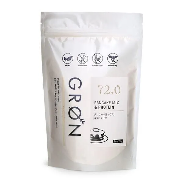 グルテンフリー & 高タンパクのパンケーキミックスです。 <商品紹介> ヘルシーな朝食やお子様の朝食に。シンプルな原材料で、甘さ控えめに作ったギルトフリーなパンケーキミックス・227gです。 岡山県産の米粉に加え、国内製造のソイプロテインを使用。グルテンフリーとは思えないふっくら感が味わえます。 1食分(本品1/2袋・114g)で、直径10cmのパンケーキが3-4枚ほど焼けます。 36gのタンパク質が含有されていますが、無調整豆乳などを使うと、より多くのタンパク質を摂ることができます。 パンケーキだけでなく、ケーキ粉としても使用が可能。 マフィンやクレープ、ケーキやクレープ、料理のつなぎなど、たくさんの利用用途をお試しください。 *ホームページにてレシピも公開中-> https://groen.jp/columns-recipes/recipes
