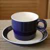 すっきりしたデザインのリーンシリーズ。フランスの朝の食卓をイメージしてつくられました。 ネイビー×クリームで深みのある良い色合いです。 こちらのカップ&ソーサーは少し小ぶりなコーヒー用。デミタスよりは大き目です。 普段使いからおもてなしまで幅広く活躍しそうです。